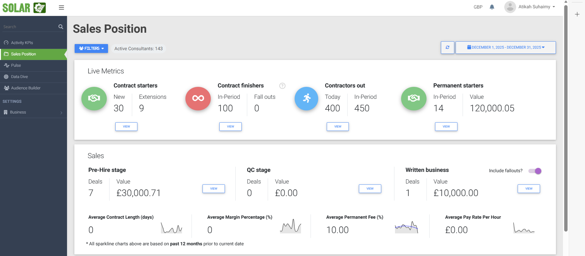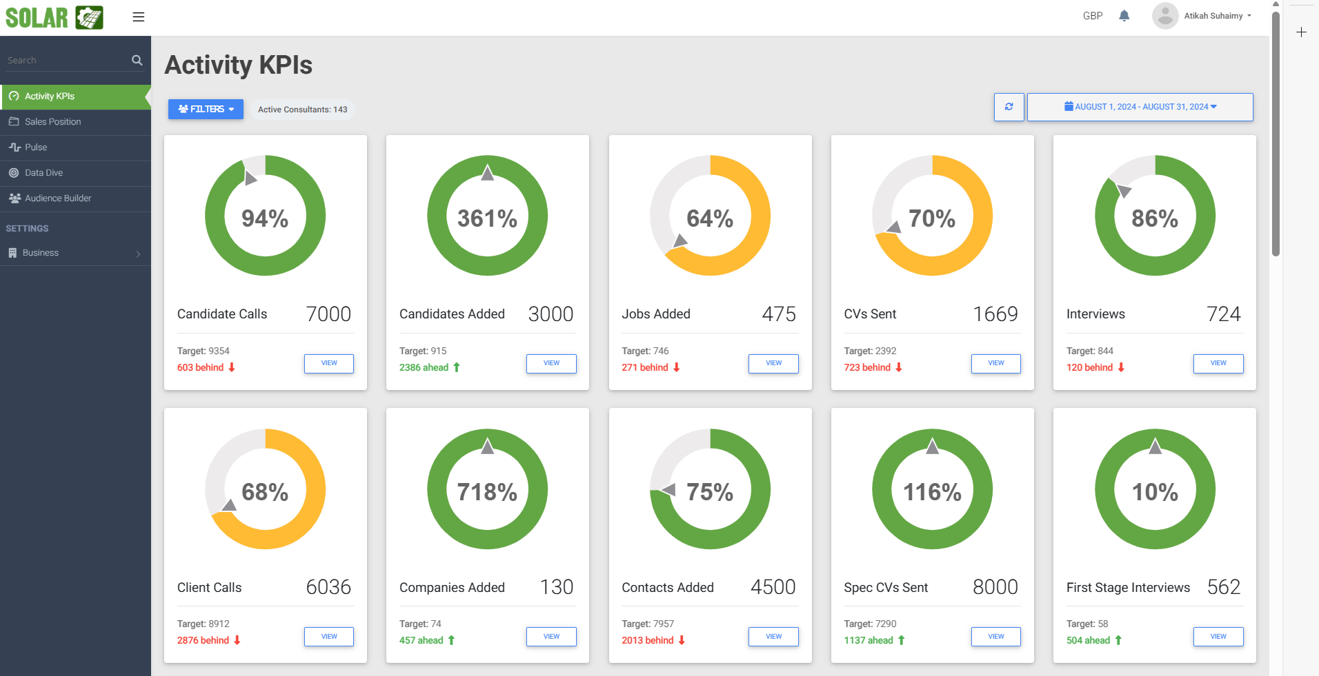 An internal KPI and performance dashboard designed to provide real-time visibility into sales and recruitment operations within the energy sector. The system aggregates data from multiple sources and presents actionable insights through dashboards, charts, and performance ratios.